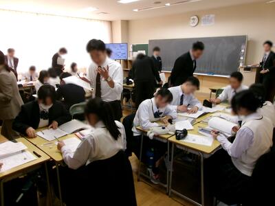 本日、6時間目に2年1組で英語の研究授業がありました。2ー1の生徒は他のクラスより一時間多い授業だったにもかかわらず、真剣に学習班の班員と教えあったりしていました。