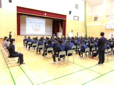 生徒たちは興味津々といった様子でスクリーンを食いつくように見ていました。動画を見て、「私たちも踊ろう!!」や「どうしよう…出てみようかな」といった声が生徒たちから聞こえてきました。ぜひぜひ、有志発表に参加してみんなとの思い出を作ってほしいですね!!