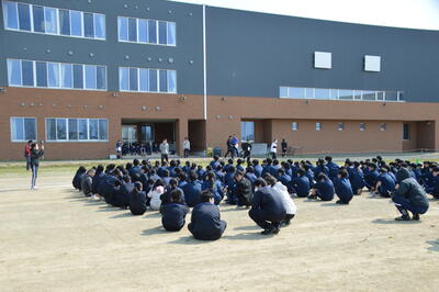 6時間目には全体練習が行われました。入退場の確認などを再度行い、残り時間はブロックごとに東波を実際に行っていました。写真2枚目はその時の様子です。