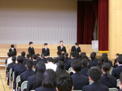 合唱祭で学んだことを活かして…… 投稿: 教職員 (09:01) 本日、1時間目に合唱祭反省集会が行われました。3年生のパートリーダーがこれまでの反省を述べていました。 全員に対して共通していたことは、「合唱祭で得た経験をこれからの学校生活に活かしていこう」ということでした。 特に3年生に関しては学力テストや入試といった人生の岐路に立つ時期です。ここで学んだことを存分に活かして自身の進路の実現に向けて努力していってほしいと思います。 Tweet -