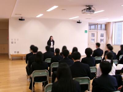 面接って必要? 投稿: 教職員 (17:42) 進学先の高校入試で、面接があるという高校は少なくないのではないでしょか?本日は面接を行う際のねらいや心構えを学びました。 中には、実際に面接を行った生徒もおり、実演をして他の生徒たちに面接の秘訣を伝授していました!! (こうした面接練習は人生のいつかで必ず役に立ちます!!覚えおくのだよ!!) Tweet -